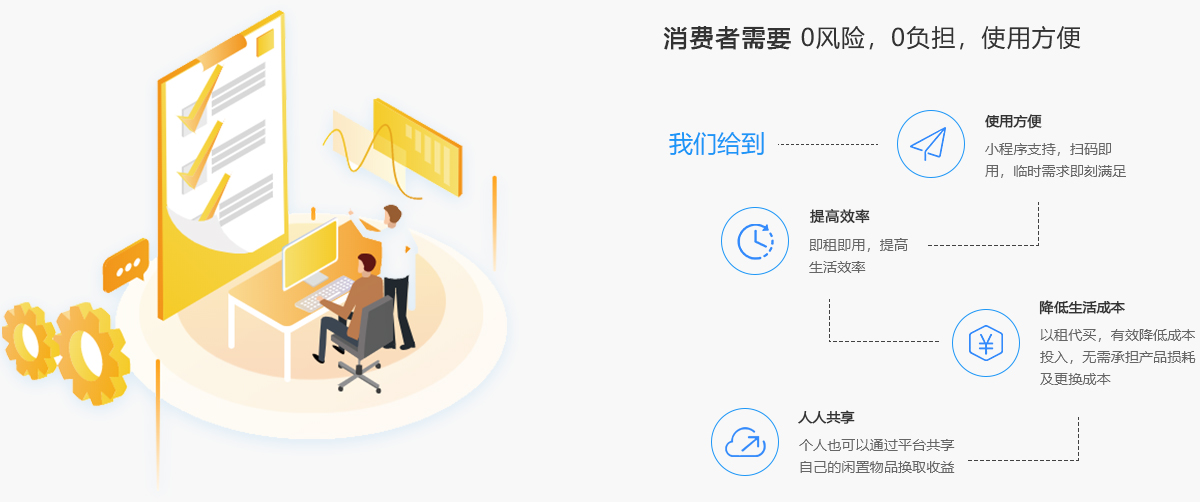 致力為用戶打造一個高品質的信用免押租賃平臺,讓信用成為資產,讓用戶享受到因為信用帶來的便利和優惠。同時,通過以租代買幫助更多生產企業、零售商家、批發商創新商業模式,拓展市場渠道。