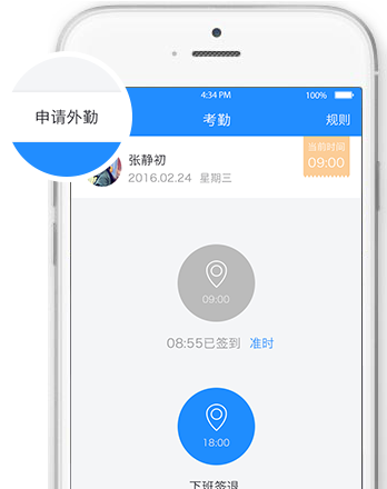 今天請假了不需要打卡 忘記了打卡要補一個請假單 我外出采購了,沒打卡 考勤和審批高度融合。